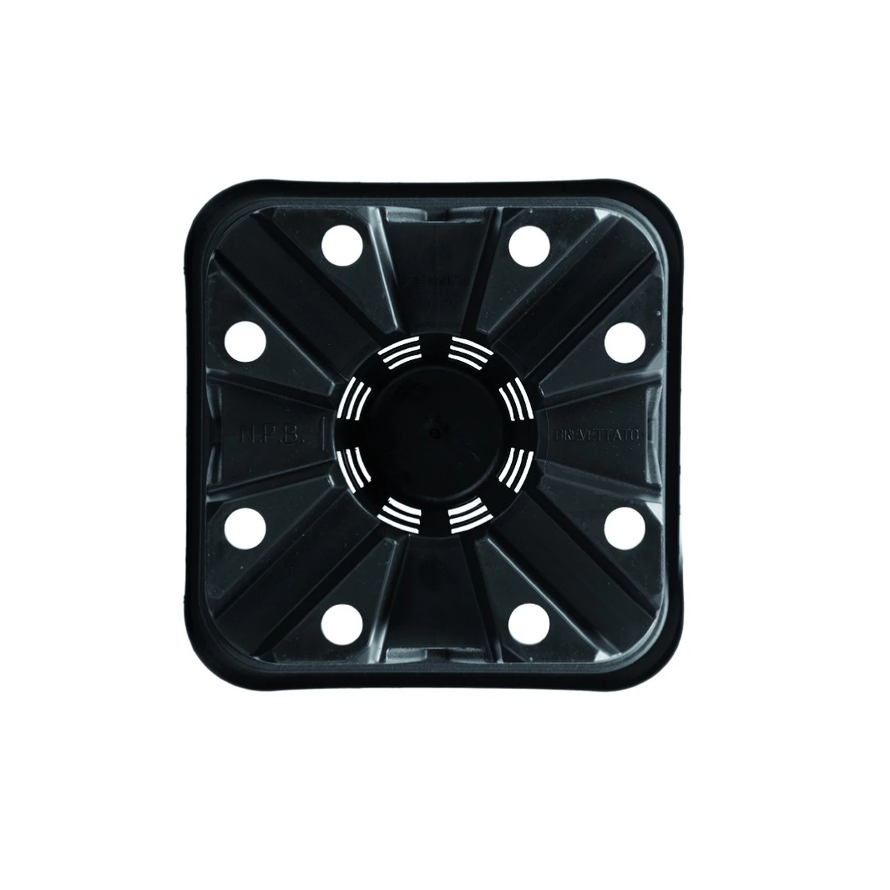 Vaso quadro con le pareti costolate e il fondo in rilievo per evitare la spiralizzazione delle radici.